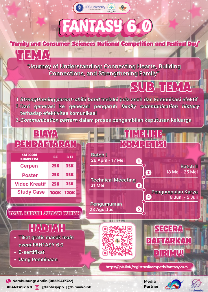 Kamu suka berkompetisi? tertarik untuk memperkaya pengetahuan dan pengalaman di bidang keilmuan Ilmu Keluarga dan Konsumen? Cocok banget!๐