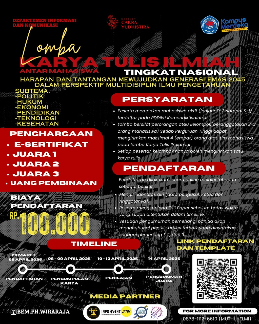 Bagi kamu yang ingin mengikuti Lomba Karya Tulis Ilmiah tingkat Nasional yang diselenggarakan oleh Badan Eksekutif Mahasiswa Fakultas Hukum Universitas Wiraraja Madura, kami ada info penting, nihh!